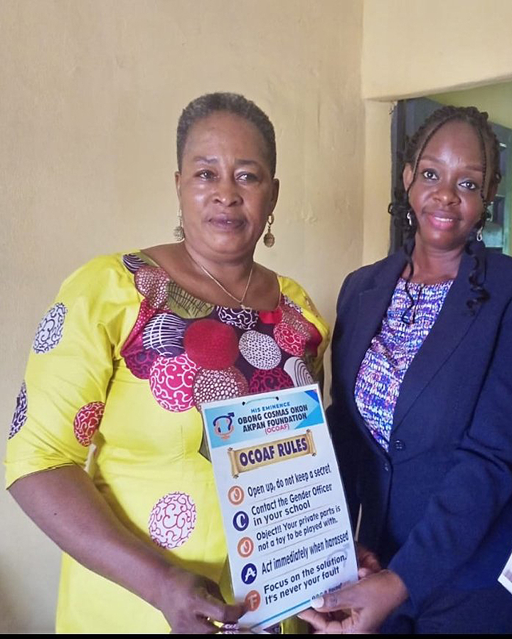 The Obong Cosmas Okon Akpan Foundation (OCOAF) empowers women and girls, fostering a world free from gender-based violence and marginalization, through education, economic empowerment, and unyielding advocacy for gender equality.